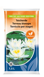 ökohum Teicherde ist eine spezielle Wasserpflanzenerde für das Setzen von Sumpf- und Wasserpflanzen im Gartenteich, Naturteich oder auch im kleinen Teichbecken. Die stabile Struktur und das hohe Porenvolumen dieser Erde fördern die Bewurzelung, verhindern Sackungen und sorgen für ein gesundes Wachstum. Die gute Abstimmung der Nährstoffe fördert das Pflanzenwachstum und mindert gleichzeitig die Bildung von Algen.