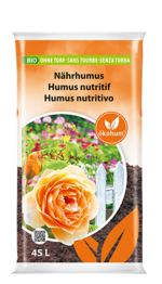 ökohum Nährhumus schützt Pflanzen, Boden und Bodenlebewesen vor Frost, Austrocknung und Erosion. Das hohe Speichervermögen und das ausgewogene Nährstoffverhältnis ermöglichen gesundes Wachstum und üppige Blütenpracht.